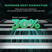 The Smart FC-E6500’s aluminum heatsink large surface area increases its passive cooling by 30%. The IP65 waterproofing eliminates any worry about using this light in a humid environment.