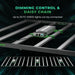 Also included is a traditional dimming knob that can control an individual lights intensity or can be used in tandem with up to 30 daisy chained lights to control all of their dimming from a single light.