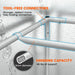 Setting up the grow tent is quick and hassle-free. Simply connect the steel frame, attach the tent fabric, and insert the filter straps and floor tray. No tools are required for assembly.