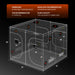 Made with 1680D Oxford canvas and 100% Diamond Reflective Mylar, this grow tent maximizes light efficiency while preventing leaks. The thick, dense fabric is supported by a hardened steel frame with a 300 lb load capacity for exceptional durability and stability.